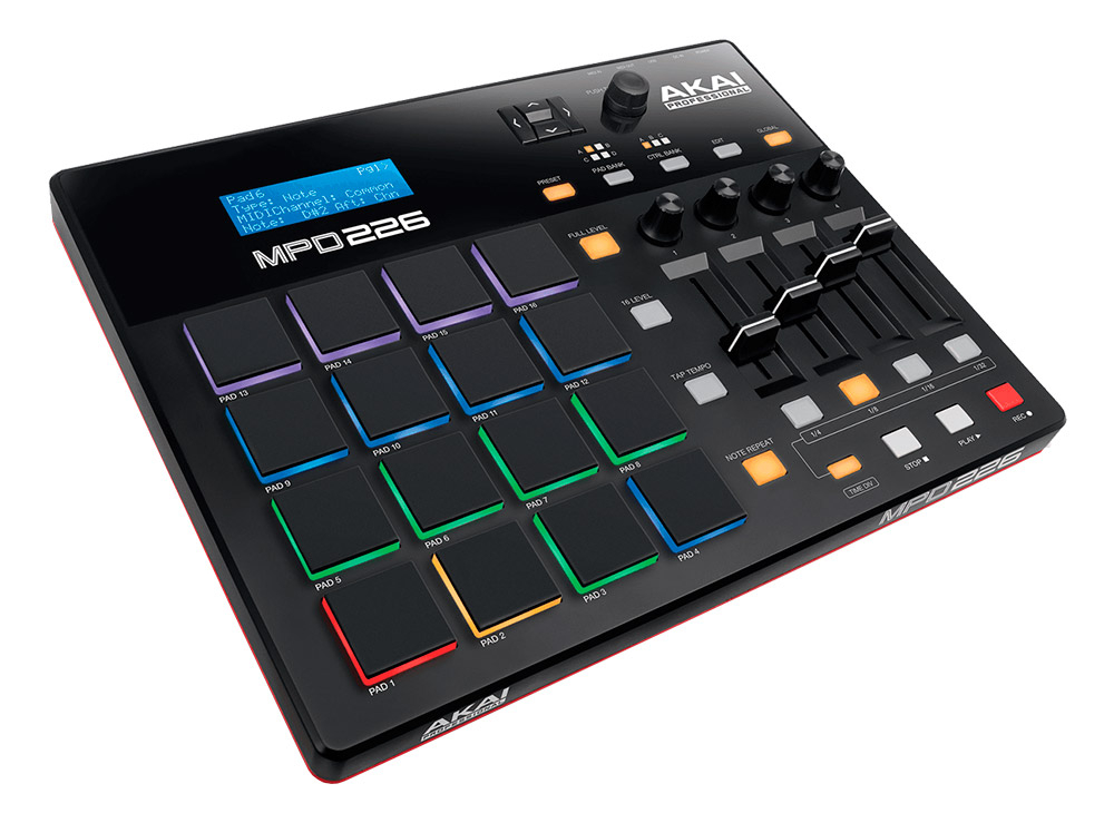 Le MPD226 est un contrôleur USB/MIDI haute performance, résultat des 6 dernières années du retour d’expérience des utilisateurs. Le MPD226 embarque de nouveaux pads épais, ultra-sensibles de type MPC créant une incroyable réponse aux interactions des joueurs, et un ensemble de contrôle considérablement élargi de 4 potentiomètres, 4 faders et 4 boutons dans 3 banques pour 36 contrôles au total contre 12 sur le modèle MPD26 précédent.En plus d’offrir pour les performances Live ou en studio un contrôleur complet prêt à l’emploi, le MPD226 propose une parfaite compatibilité iOS (en utilisant le kit de connexion d’appareil photo) et inclus une offre alléchante d’échantillons et de logiciels (Big Bang Drums et Big Bang Cinema de SONiVOX, le logiciel de production musicale Ableton Live Lite et un éditeur de preset). En outre, les utilisateurs peuvent profiter de l’édition de commande intuitif directement à partir du panneau avant du MPD226 via la fonction d’édition de preset, afin que tous les musiciens, quelque soit leur niveau puissent améliorer immédiatement leurs performances.