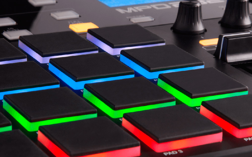 16 pads épais, rétro-éclairés RGB de type MPC sensibles à la vélocité et à l’Aftertouch.