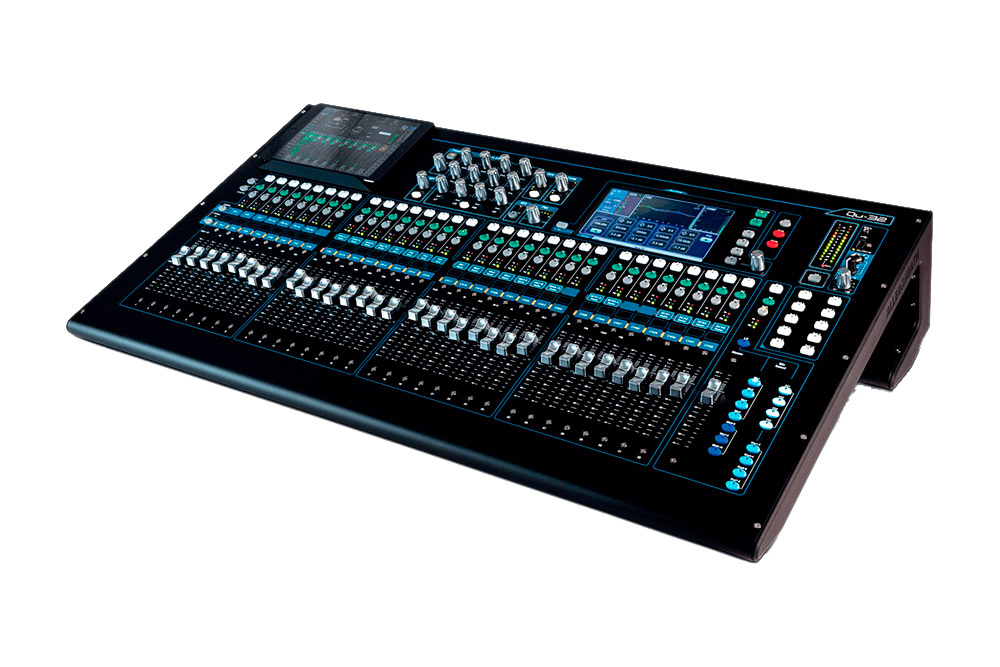 La Qu-32 Chrome Edition de Allen & Heath est une console de mixage numérique de 32 canaux avec 33 faders motorisés, Instant recall, égaliseur paramétrique, contrôle par écran tactile, 5 cœurs de traitement DSP ARM, 4 moteurs FX intégrés et enregistreur USB multipiste intégré.