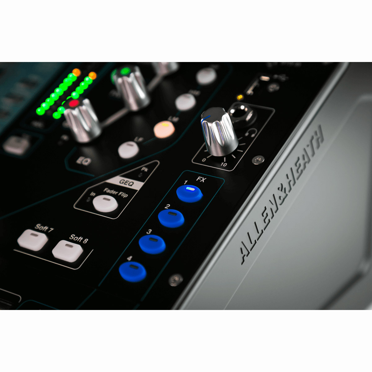 - Faders motorisés : rappel des scènes et fader flip de l'égaliseur graphique