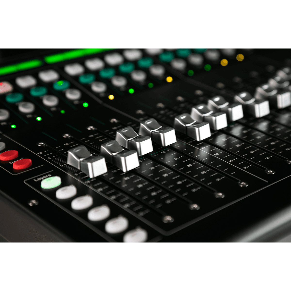 - 17 faders pour le mixage manuel, avec 6 couches de faders.