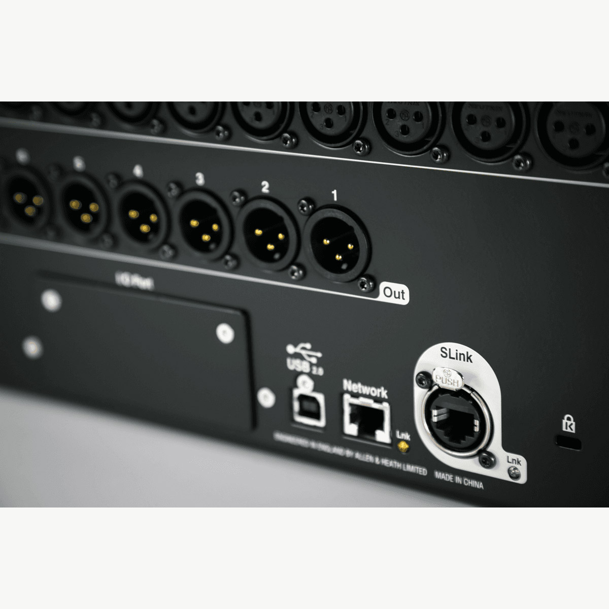 - Port SLink pour l'extension audio et E/S à distance.