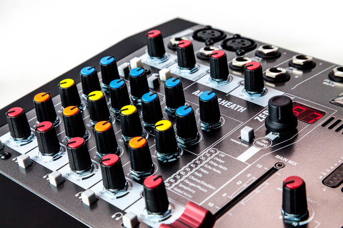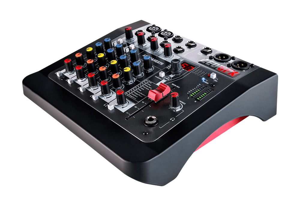 La ZED-6FX Allen & Heath est une console analogique 6 canaux avec 2 canaux micro/ligne/instrument, 2 canaux stéréo, égaliseur 2 bandes, et effets intégrés.