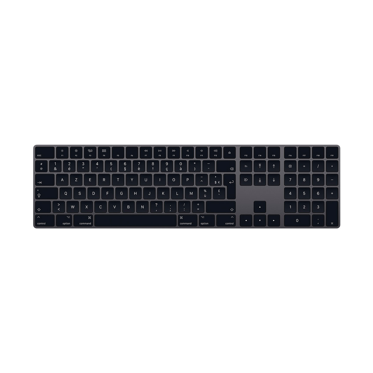 - Apple Magic Keyboard français (AZERTY) couleur gris sidéral- Contenu du coffret : Magic Keyboard avec pavé numérique, câble Lightning vers USB