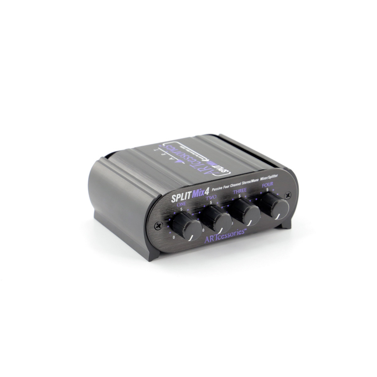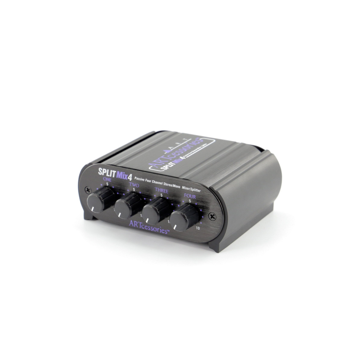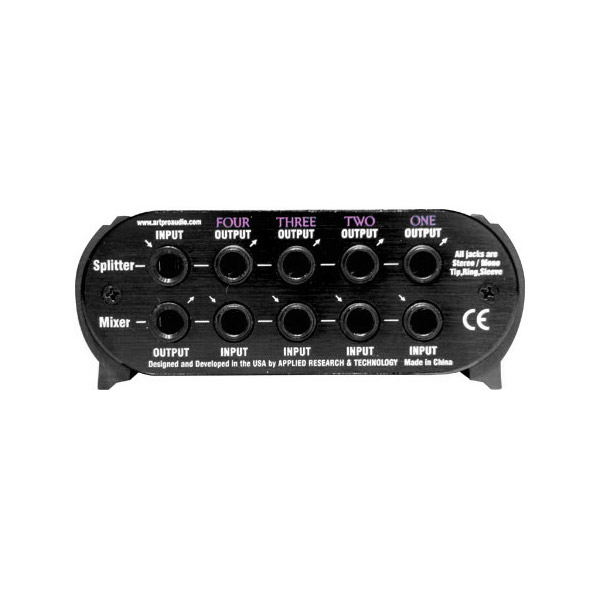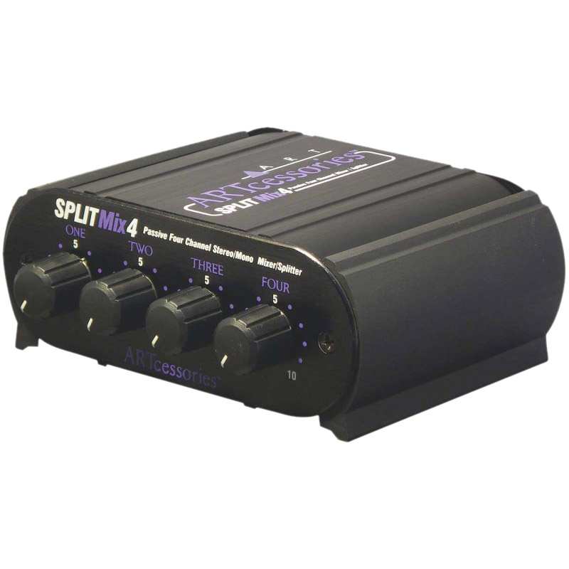 La SPLITMix4 d'ART est un Splitter/Mixeur passif 4 canaux, avec 4 entrées Jack stéréo et 1 sortie Jack stéréo, avec 90 dB d'atténuation par canal.