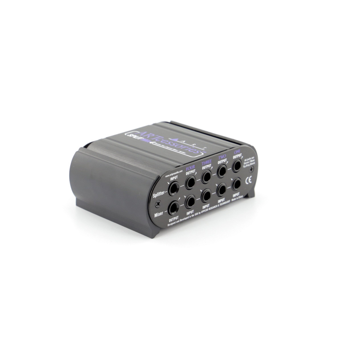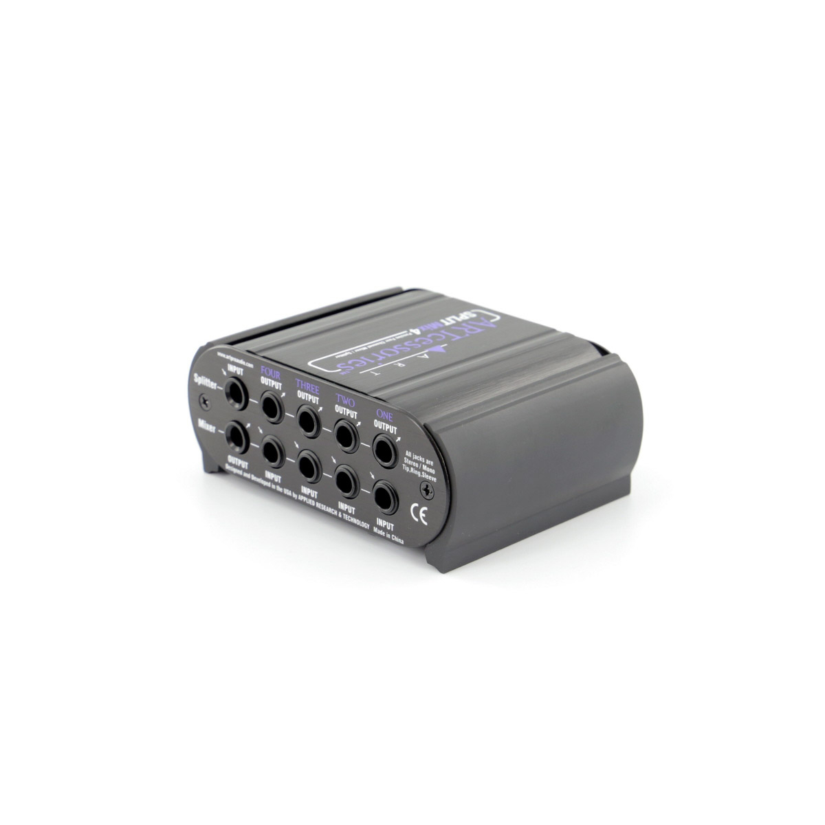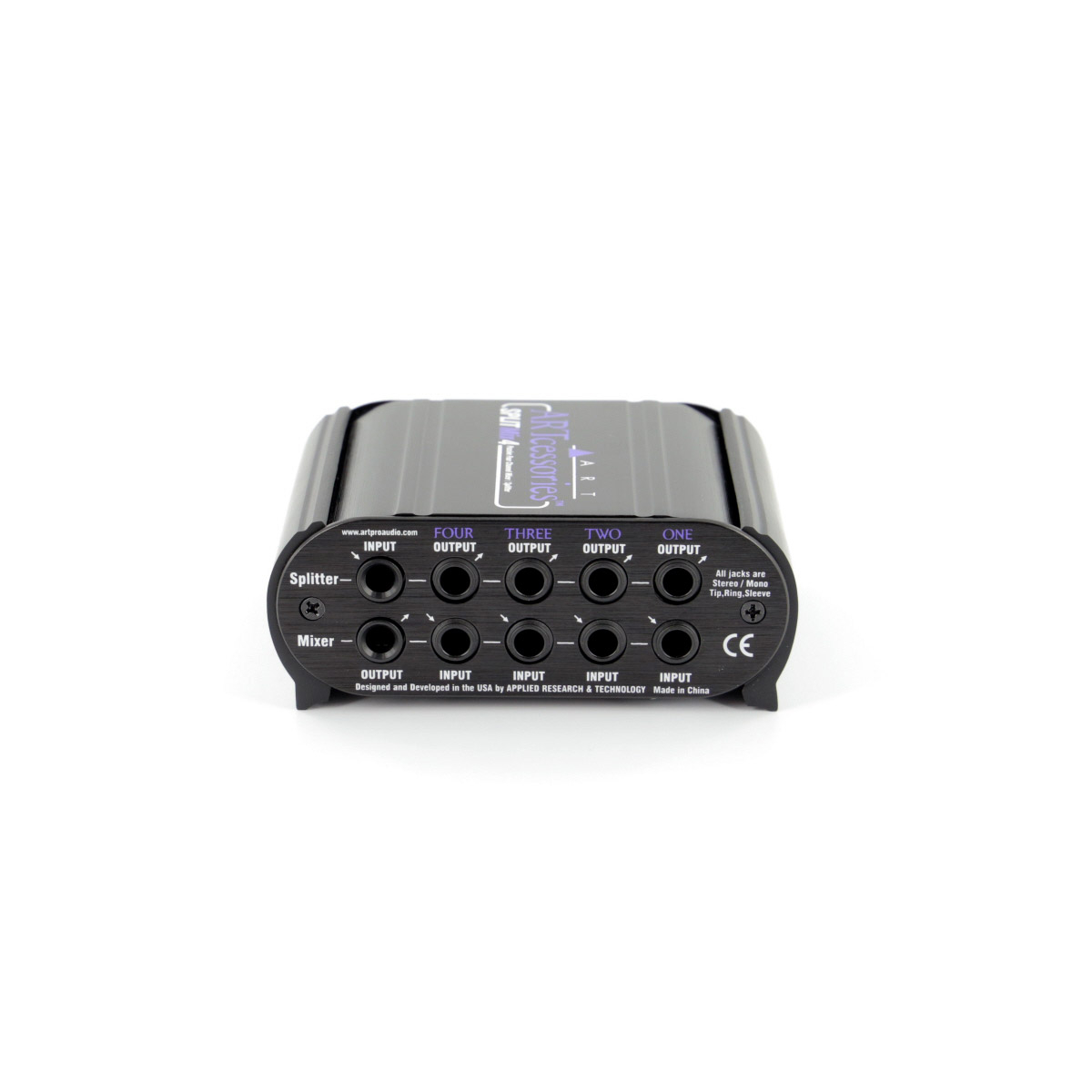 La SPLITMix4 d'ART est un Splitter/Mixeur passif 4 canaux, avec 4 entrées Jack stéréo et 1 sortie Jack stéréo, avec 90 dB d'atténuation par canal.