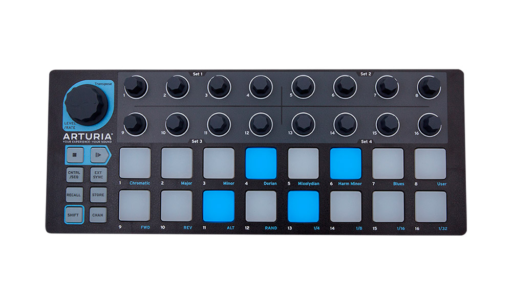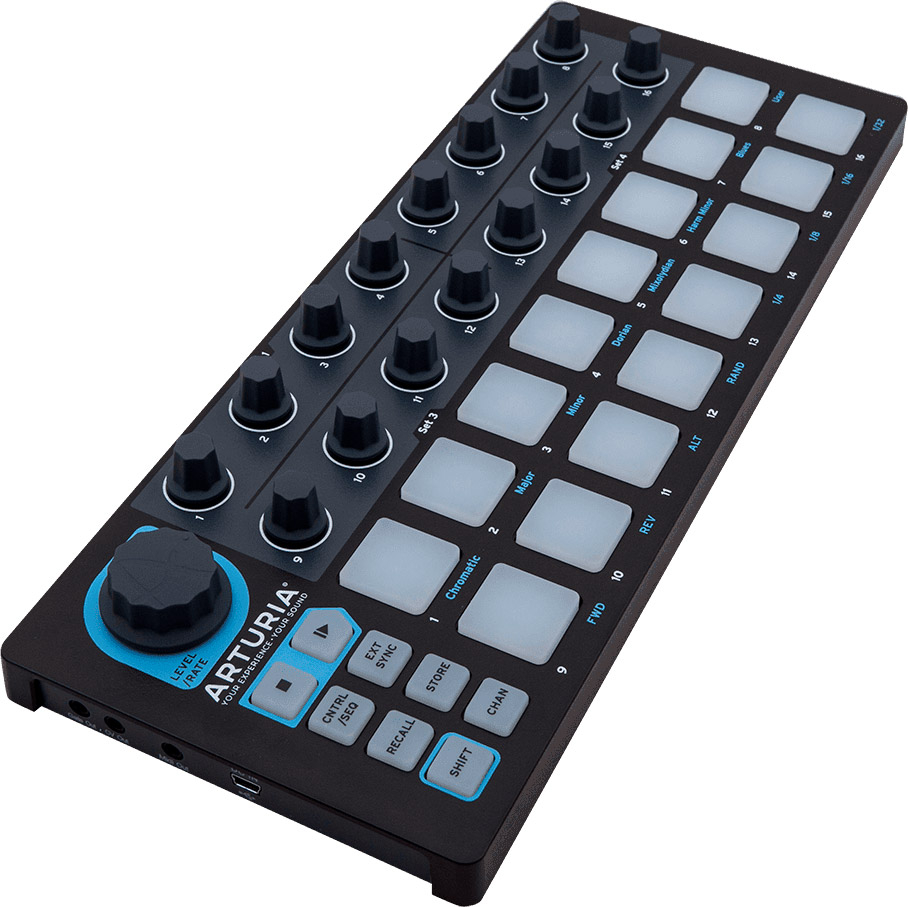 Le BeatStep d’Arturia Black Edition, est un super contrôleur de 16 pads et encodeurs qui peux aussi fonctionner en mode séquenceur. Plus de détails