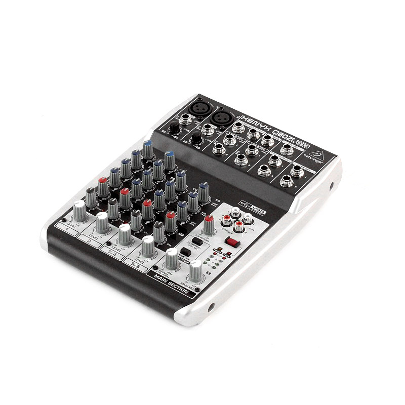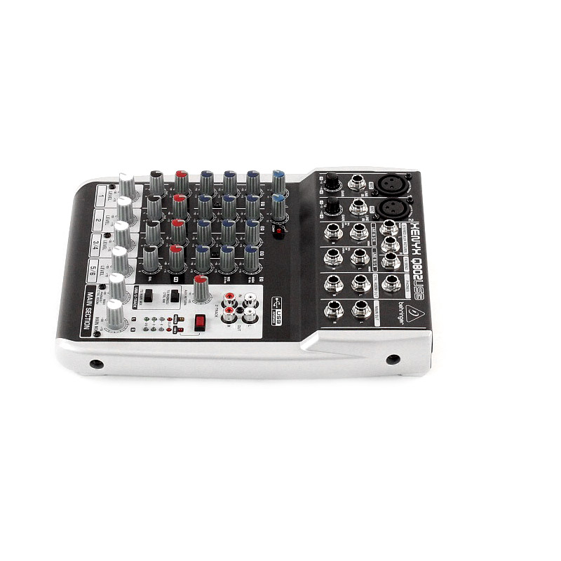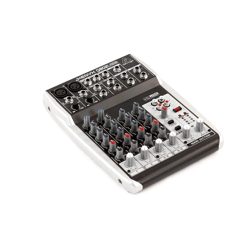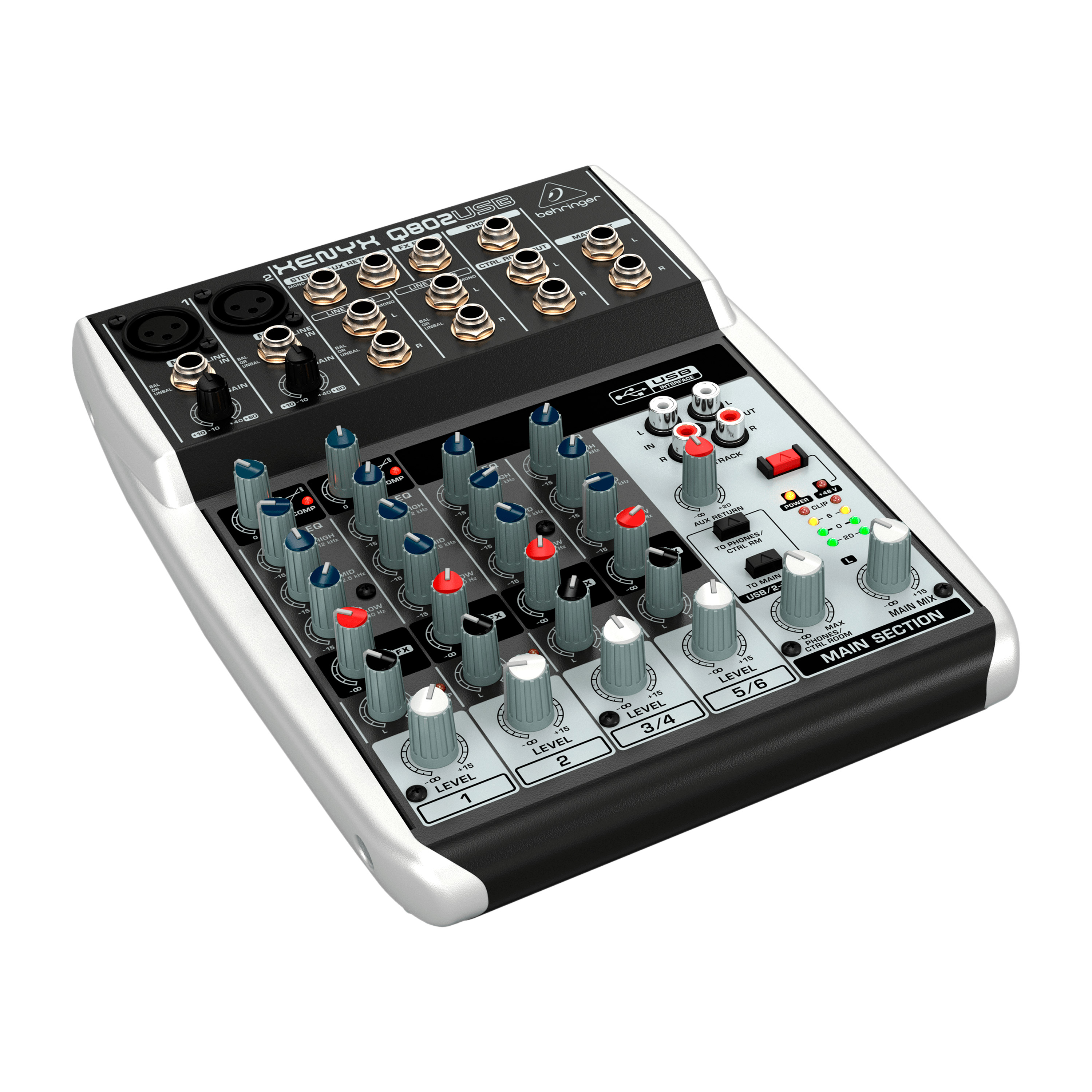 La Behringer Xenyx Q802USB est une petite table de mixage USB compacte avec 8 entrées, 2 bus analogiques, EQ 3 bandes et interface audio USB intégrée.