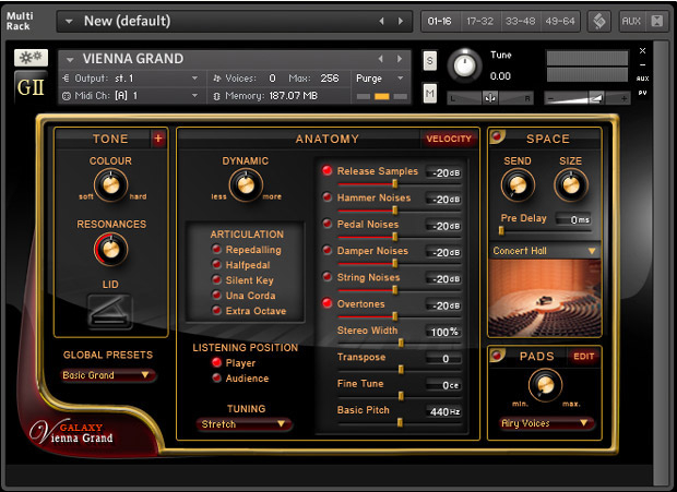 Le Vienna Grand amène le Bösendorfer Imperial 290 dans votre studio. Avec ses huit octaves pleines sur 97 touches, le Vienna Grand reproduit fidèlement le Bösendorfer Imperial 290, le fleuron des pianos à queue de concert de la marque. Le Vienna Grand a été enregistré aux Hansahaus-Studios en Allemagne, où de nombreux enregistrements de jazz ont été réalisés et récompensés par des Grammy Awards. Des micros supplémentaires ont été placés sur le registre grave du 290 pour capturer sa puissance dans les graves. Le Vienna Grand fait un excellent travail de reproduction de l'immense plage dynamique, et de l'énergie phénoménale du Bösendorfer Imperial 290.
