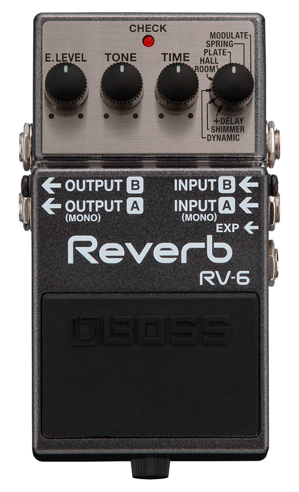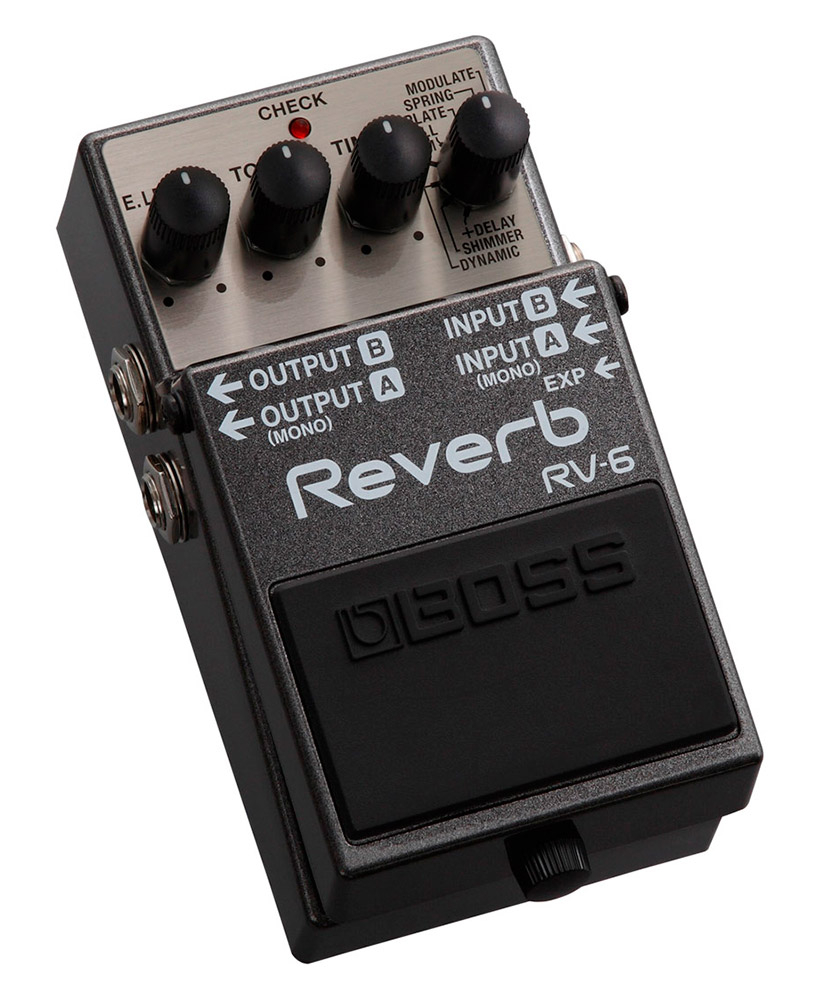 Le Boss RV-6 est une pédale de réverbération numérique avec 8 modes, une entrée pour pédale d'expression et un fonctionnement en mono ou stéréo, au choix. Plus de détails