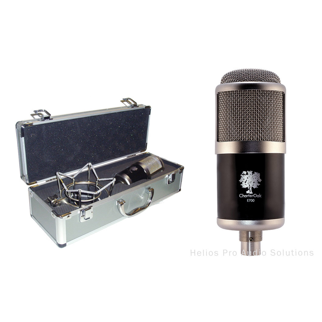 Le CharterOak E700 est un microphone à condensateur FET double diaphragme en Mylar plaqués or avec une électronique d'amplification en pure Classe A.Il excelle dans les applications universelles de prise de son mais ses qualités sonores extrêmement riches, son niveau de bruit très bas et le soin apporté à sa fabrication en font un premier choix dans un environnement de radio diffusion et de prise de voix.