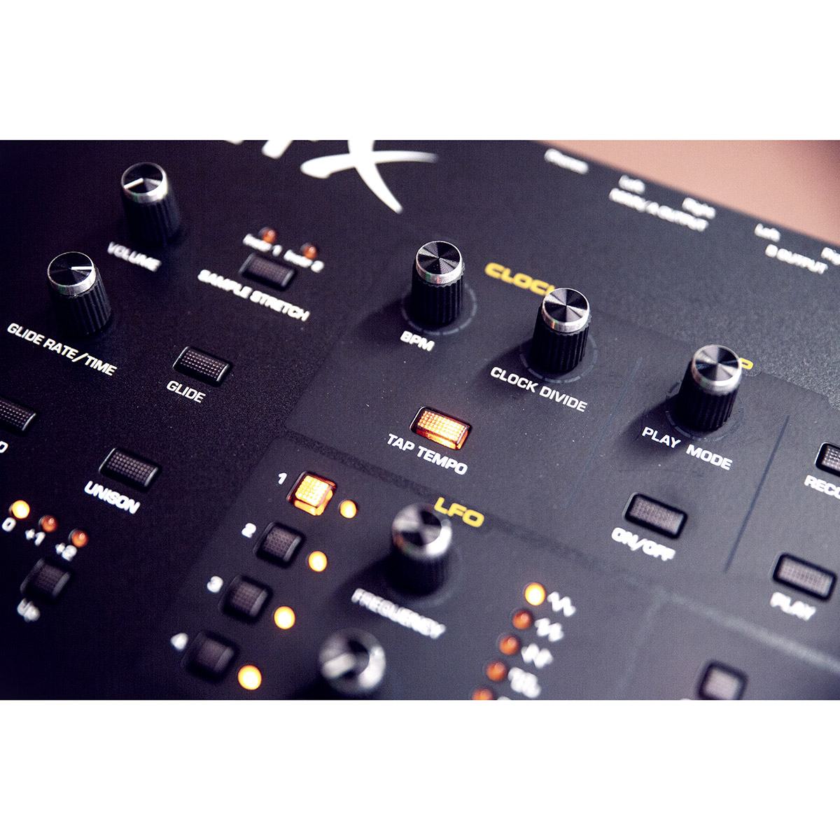- Glide (portamento) : taux séparés par oscillateur ; (les échantillons peuvent glisser en mode Sample Stretch).