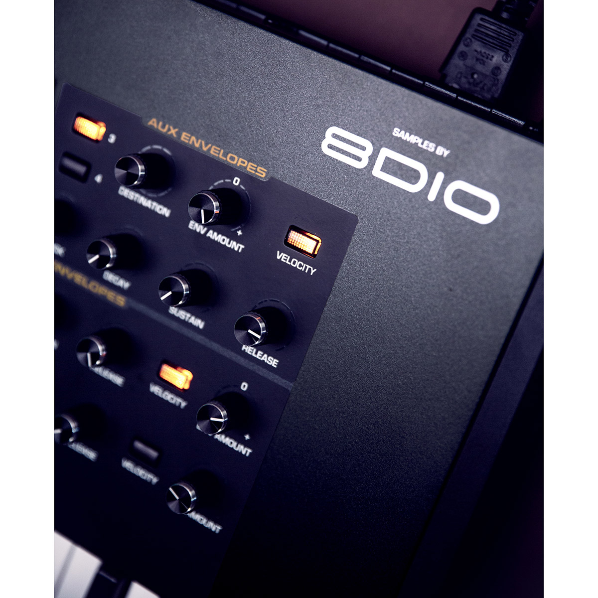 - Bibliothèque d'échantillons de 150 GB avec instruments acoustiques, électroniques, effets ambiants et cinématographiques élaborés par le fameux éditeurs d'instruments virtuels 8DIO