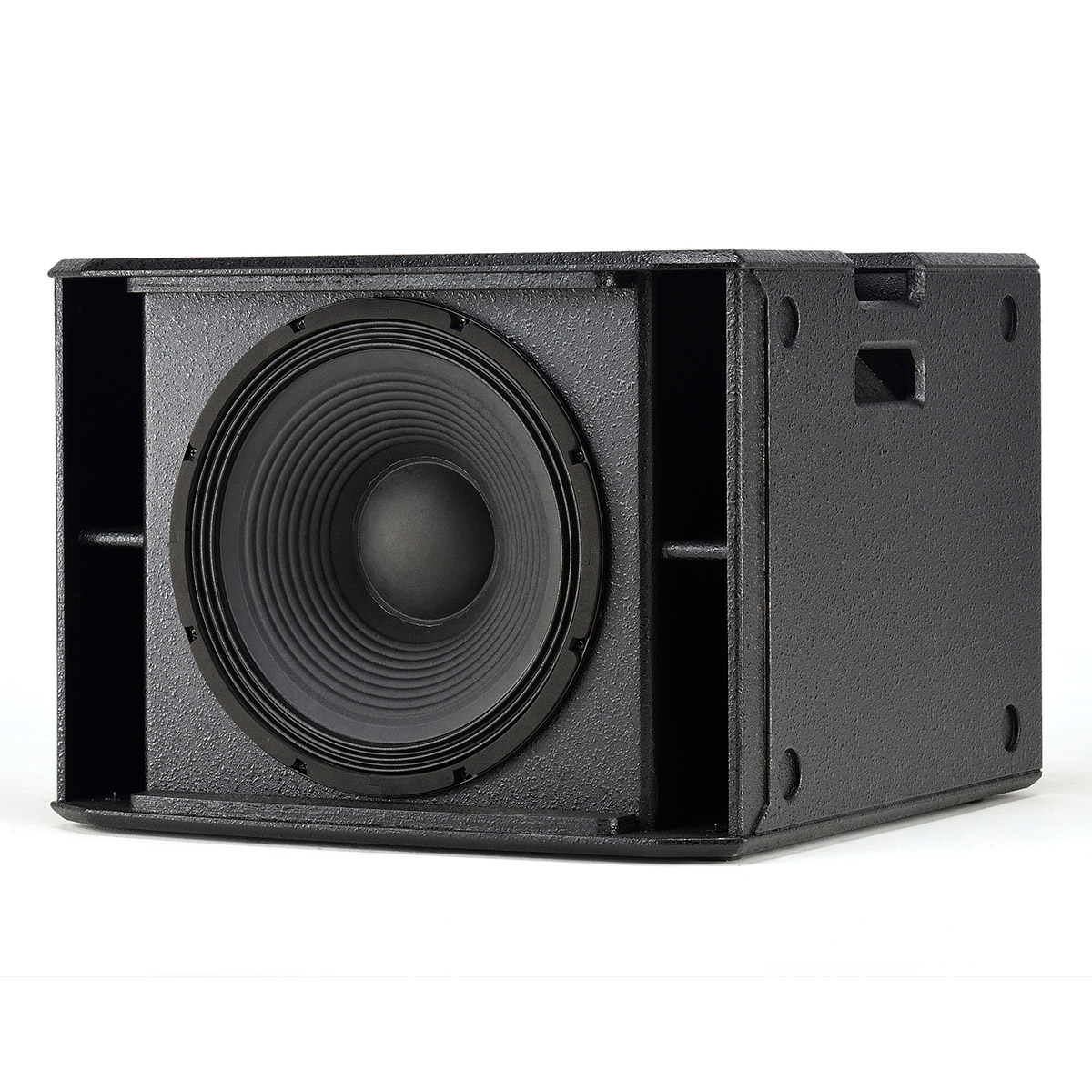 Le caisson robuste bass-reflex en contreplaqué assure des performances de qualité professionnelle pour un poids de 34,8 kg, et dispose de 2 poignées intégrées sur les bords supérieurs, tandis que la face arrière est équipée de roues pour un transport sans tracas.