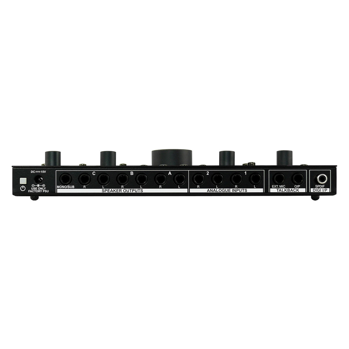 - Sorties commutables individuelles et simultanées pour trois paires de moniteurs stéréo et un caisson de basses
