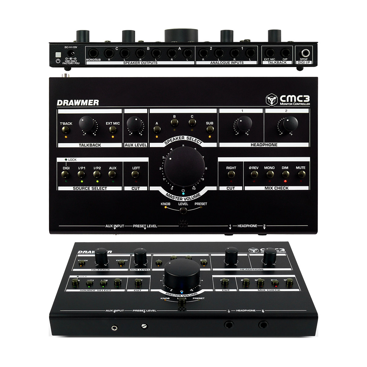 Le Drawmer CMC3 est un contrôleur de monitoring actif avec 4 entrées stéréo, des sorties pour pouvoir brancher jusqu'à 3 paires d'enceintes, une sortie dédiée mono/subwoofer et une fonction talkback. Plus de détails