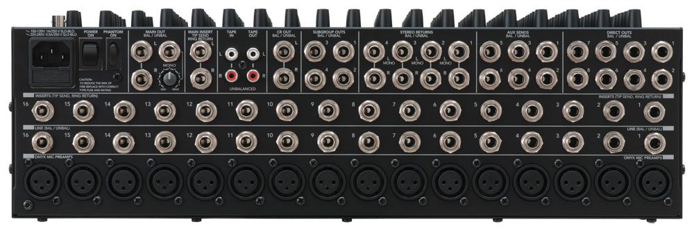 16 préamplis micros haute qualité Onyx, 16 entrées mono micro/ligne XLR/Jack 6,35mm.