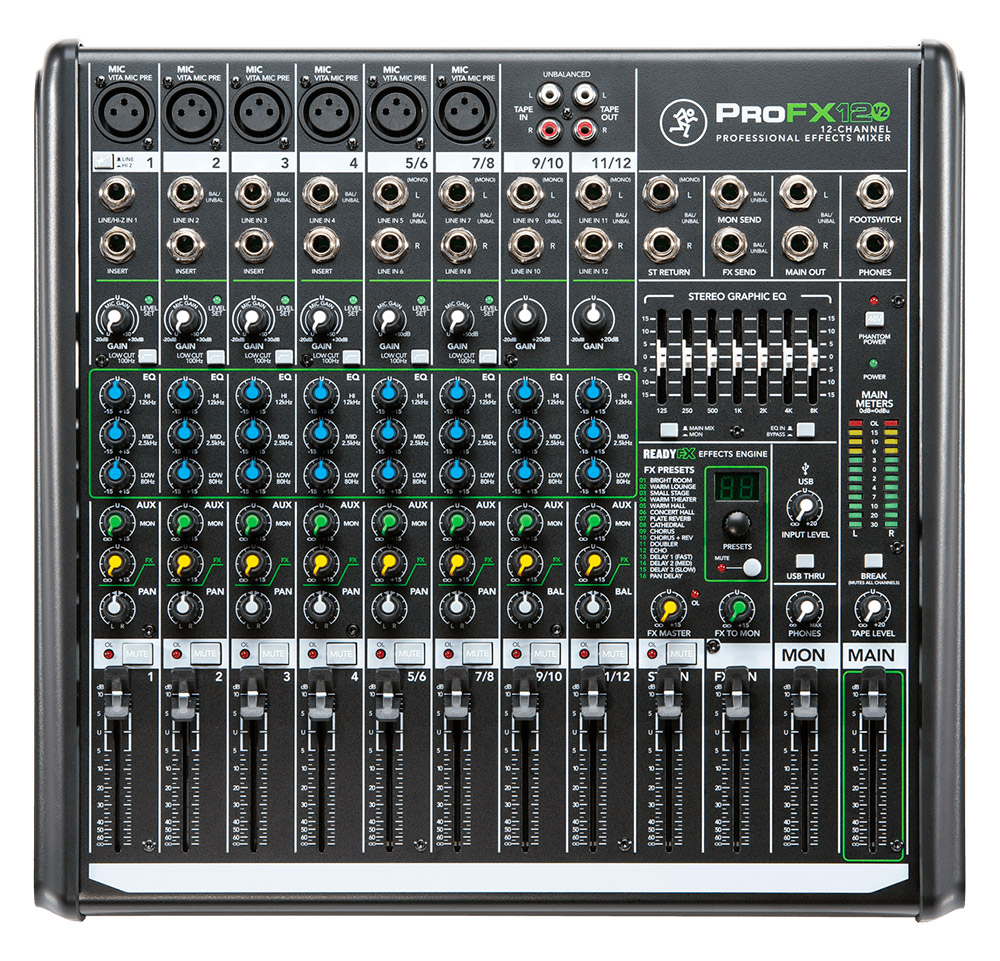 Console de mixage analogique 12 voies avec alimentation phantom, Eq graphique et multi-effets. Plus de détails