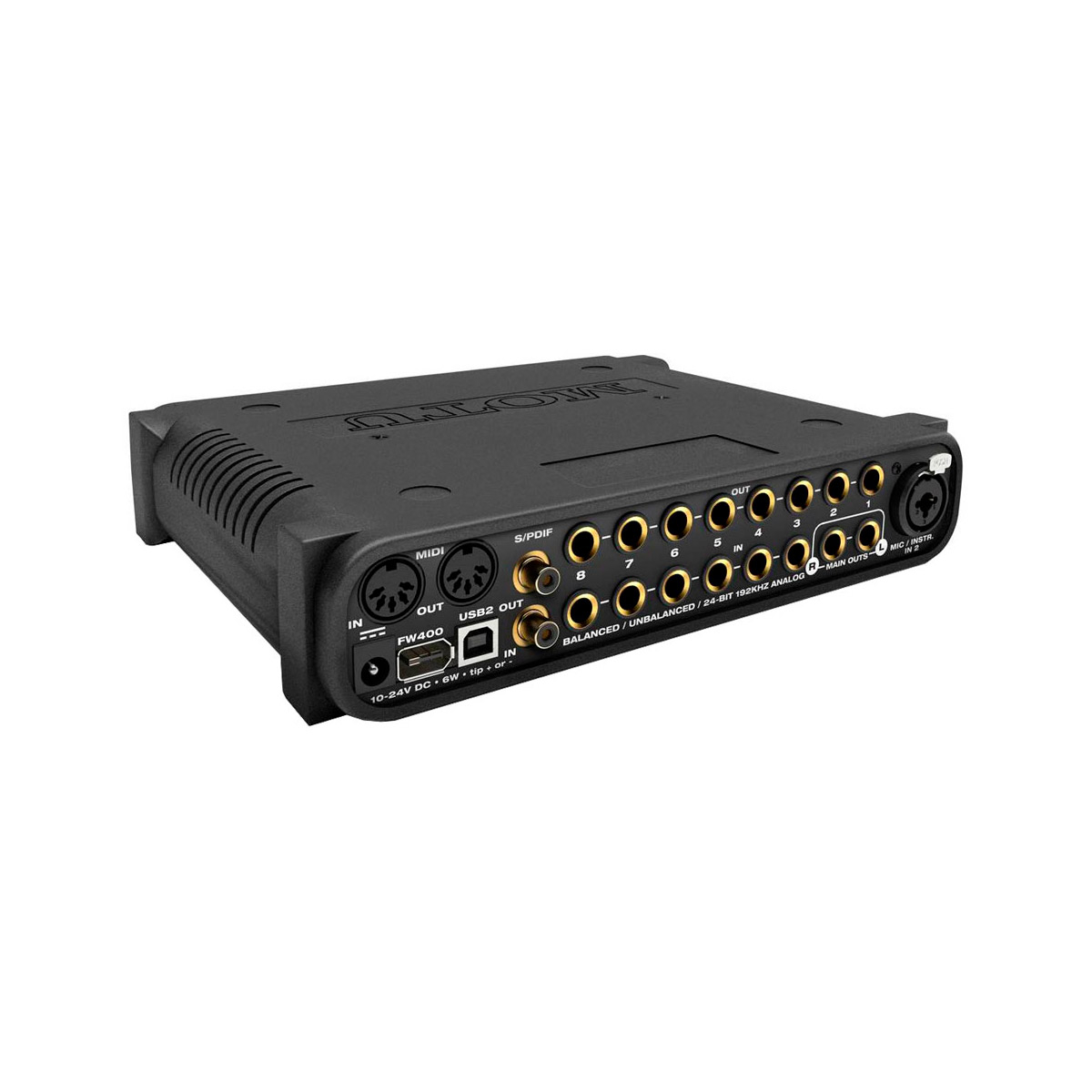 Elle offre une qualité audio professionnelle (fréquence d’échantillonnage pouvant aller jusqu’à 192 kHz) et un grand nombre d’entrées/sorties, dont deux entrées micro/instrument, six entrées analogiques au niveau ligne, dix canaux de sortie analogiques, une sortie numérique stéréo au format S/PDIF et une sortie casque stéréo.