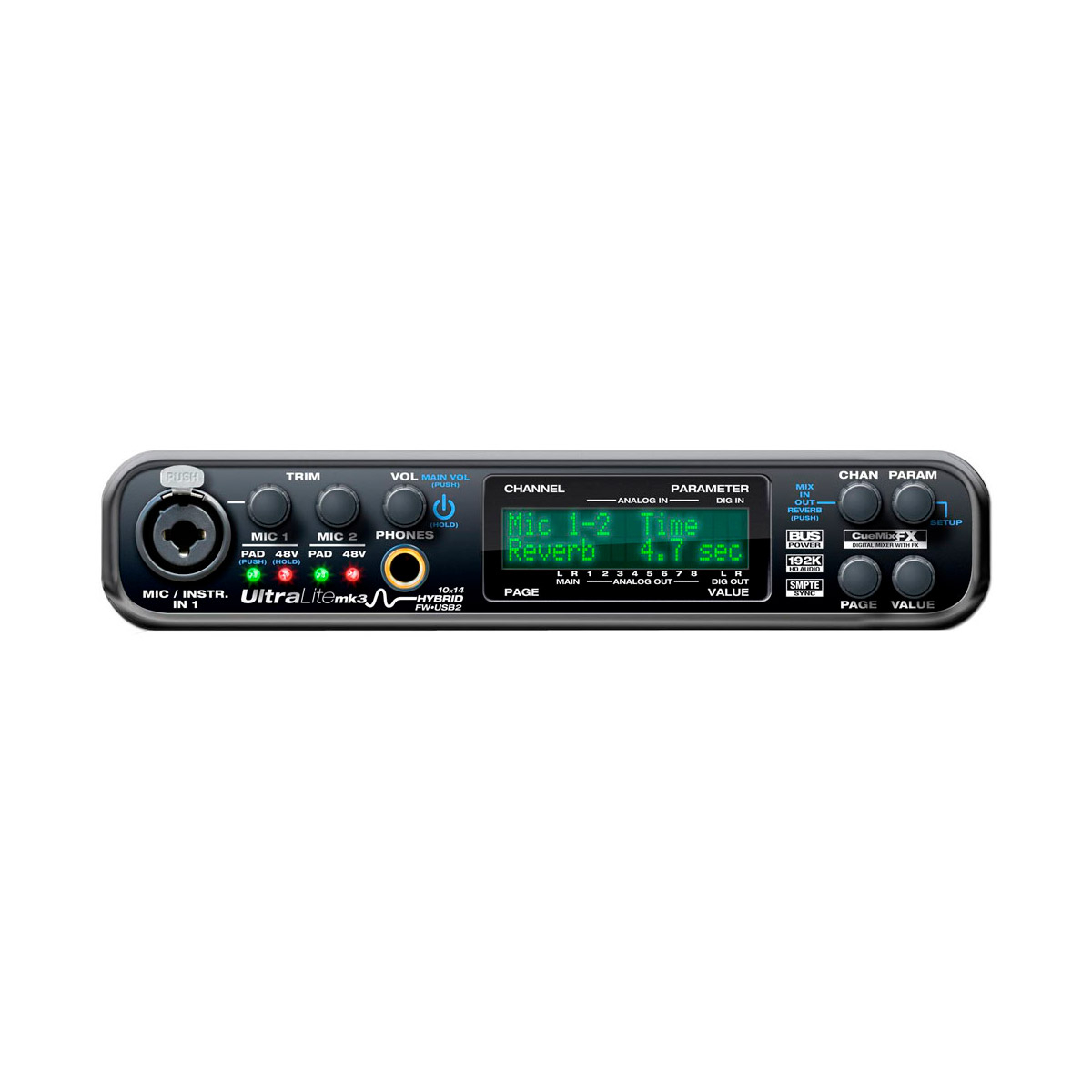 Grâce à son coffret solide et compact (1/2 largeur de rack), l’UltraLite-mk3 Hybrid s’emporte n’importe où : elle est aussi à l’aise en studio que sur scène, avec ou sans ordinateur. Utilisée en tant qu’interface ou que mixeur autonome, l’UltraLite-mk3 Hybrid met à votre disposition 10 entrées distinctes et 14 sorties séparées.