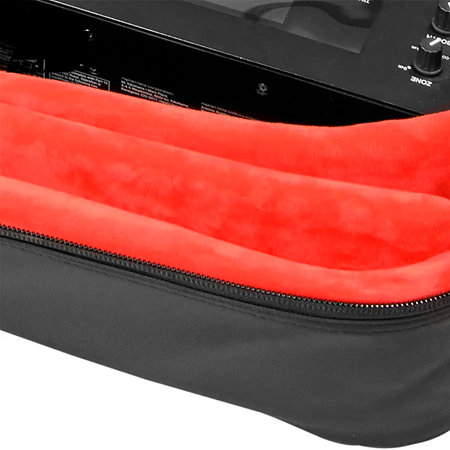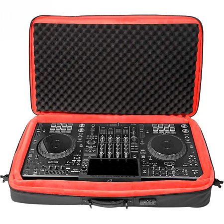Pour accompagner ce contrôleur, le pack inclut la housse DJBag Comfort XL MK2. Conçue en polyester 900D déperlant avec une doublure en Crystal Velvet rouge, elle protège efficacement contre les chocs et les projections. L’intérieur est modulable grâce à des inserts de mousse de 20 mm, permettant d’adapter parfaitement le compartiment principal. Elle dispose aussi d’une poche frontale pouvant accueillir un ordinateur jusqu’à 17 pouces, de fermetures éclair YKK hydrofuges, d’une serrure TSA et de poignées renforcées pour faciliter le transport.