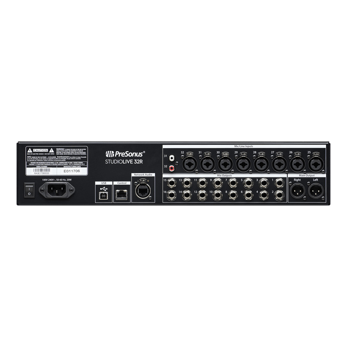 Le StudioLive Serie III 32R de Presonus est une version rack de la console de mixage numérique StudioLive 32 Serie III. Il offre 34 entrées, 32 canaux avec 32 préamplis micros, une interfaces audio 40 entrées/40 sorties en USB 2.0 et 55 entrées/55 sorties en AVB, un enregistreur numérique stéréo SD intégré, un logiciel de contrôle à distance, et des effets numériques.