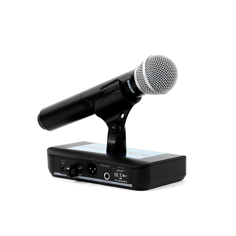 Le Shure BLX24 / PG58 est un système sans fil complet proposé sur la bande de fréquences M17 (662 à 686 MHz). Il est composé d'un récepteur Shure BLX4, accompagné d'un émetteur micro main dynamique UHF Shure PG58 avec une capsule à directivité cardioïde. Conçu pour une utilisation nomade, le système entrée de gamme UHF de Shure est très simple d'utilisation, et se montre idéal pour les répétitions, la scène, les conférences et les applications discomobile. Plus de détails