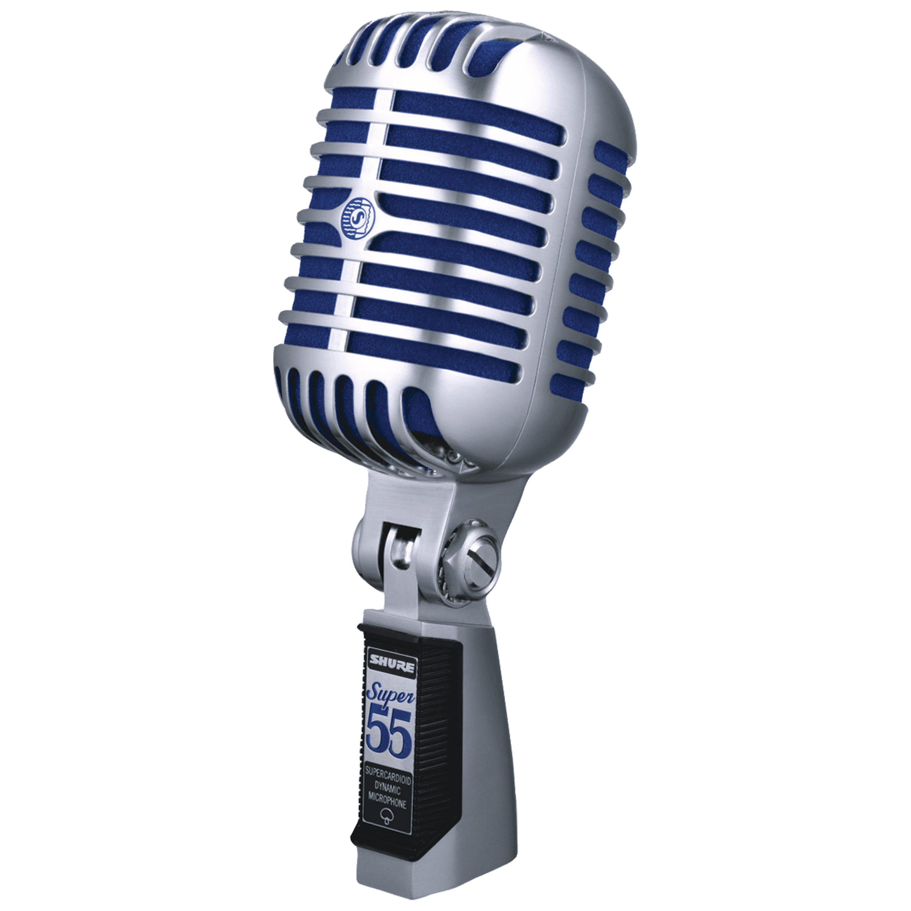 Le Super 55 est équipé d’un corps moulé sous pression chromé caractéristique, d’une plaque d’identification remodelée, d’une mousse pare-vent d’un bleu saisissant, et offre une réponse en fréquence douce pour un rendu vocal naturel.